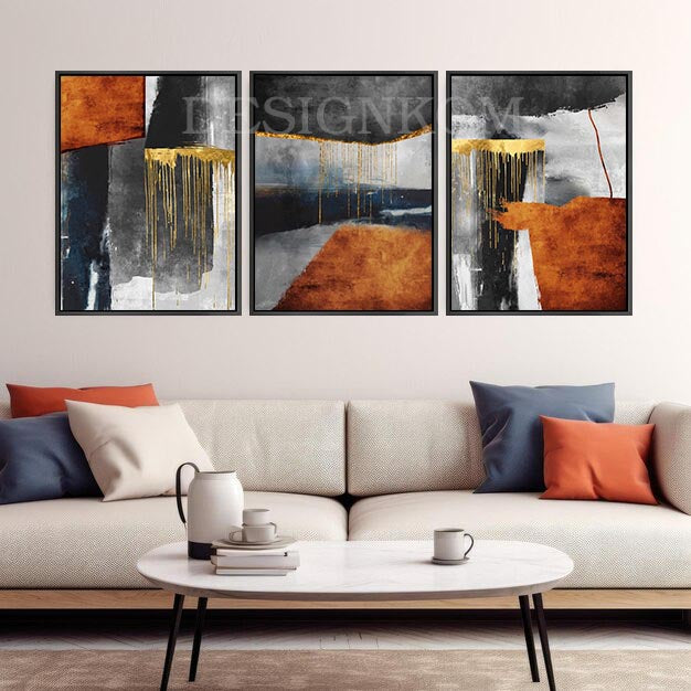 Ce magnifique **triptyque abstrait moderne** apporte caractère et élégance à votre intérieur.